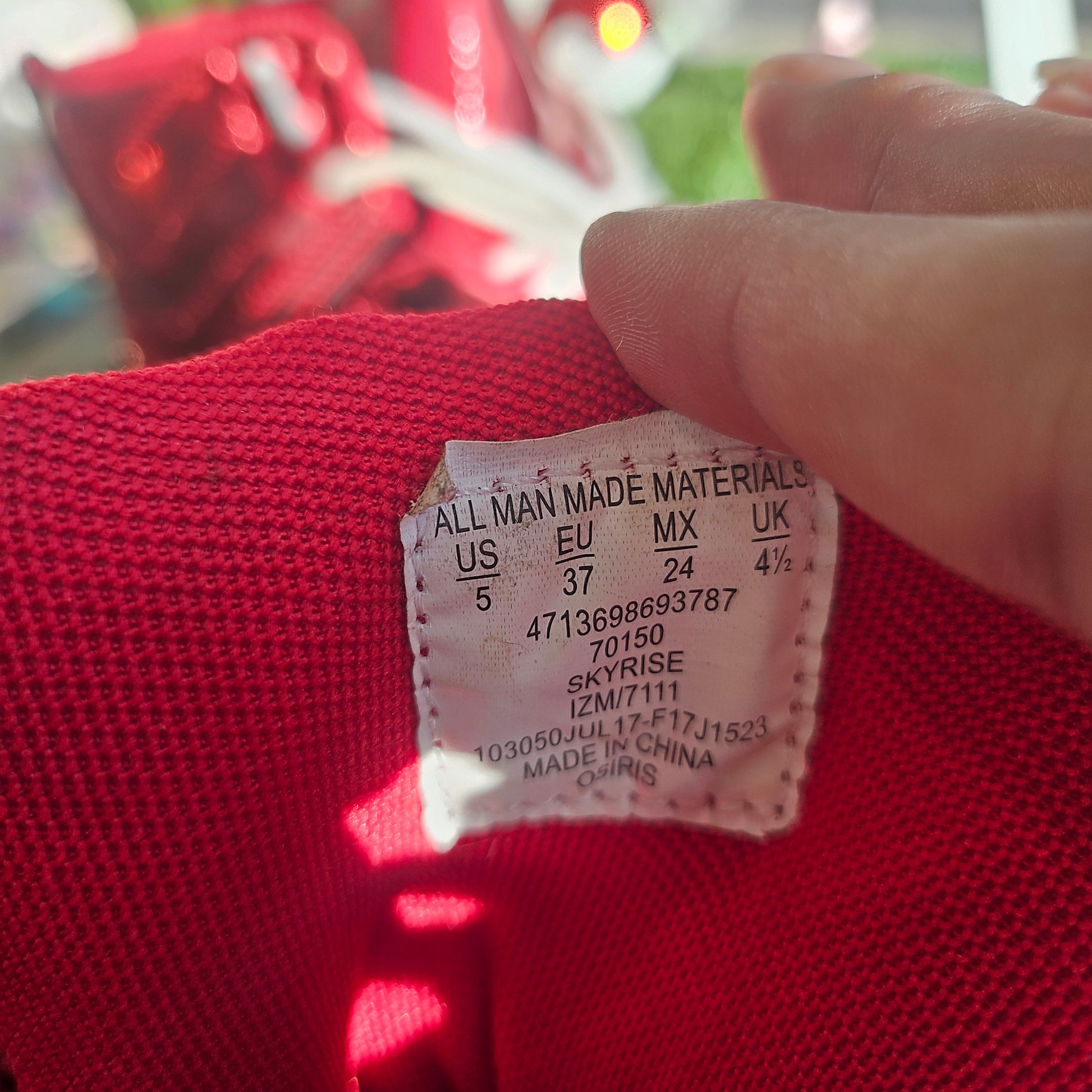 red shiny sneakers